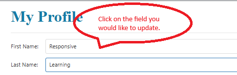 - If you would like to adjust your first name, click in the white field next to the "First Name" marker and make your change. The same process can be used to change your last name.